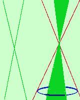 E' l'intersezione fra un cono matematico ed un piano passante per il vertice e la circonferenza di base: otteniamo una coppia di rette Naturalmente per la figura intendiamo solo il bordo cioe' le rette e non la parte di piano compresa (non e' un'area) |