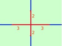 b = 2Partendo dall'origine riporto il segmento 3 a destra ed a sinistra sull'asse delle x Partendo dall'origine riporto il segmento 2 in alto ed in basso sull'asse delle y