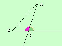 adiacente: a lato vedi un esempio di angolo esterno (in verde) che e' minore dell'angolo interno adiacente (in viola)
