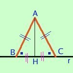 Per il secondo criterio i due triangoli sono congruenti ed in particolare sara' BH=CH ed anche gli angoli AHB=AHC che quindi saranno retti