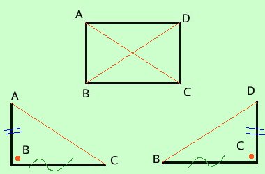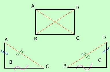 Nell'ipotesi e' compreso il fatto che sia un parallelogramma (con tutte le sue proprieta') ed abbia i quattro angoli congruenti; non scrivo tutto perche' mi ci vuole mezza pagina